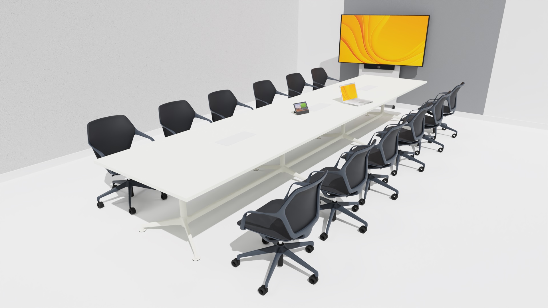 Für Bild und Ton sorgt das integrierte Microsoft Teams Rooms System Yealink MVC S40. Die Videobar vereint Kamera, Mikrofone und Lautsprecher in einem kompakten Gerät und liefert eine klare Sprachverständlichkeit sowie eine natürliche Bilddarstellung aller Teilnehmer im Raum. Die Steuerung erfolgt komfortabel über das Microsoft Teams Rooms Bedienkonzept und ermöglicht den direkten Start geplanter Meetings ohne zusätzliches Endgerät.
