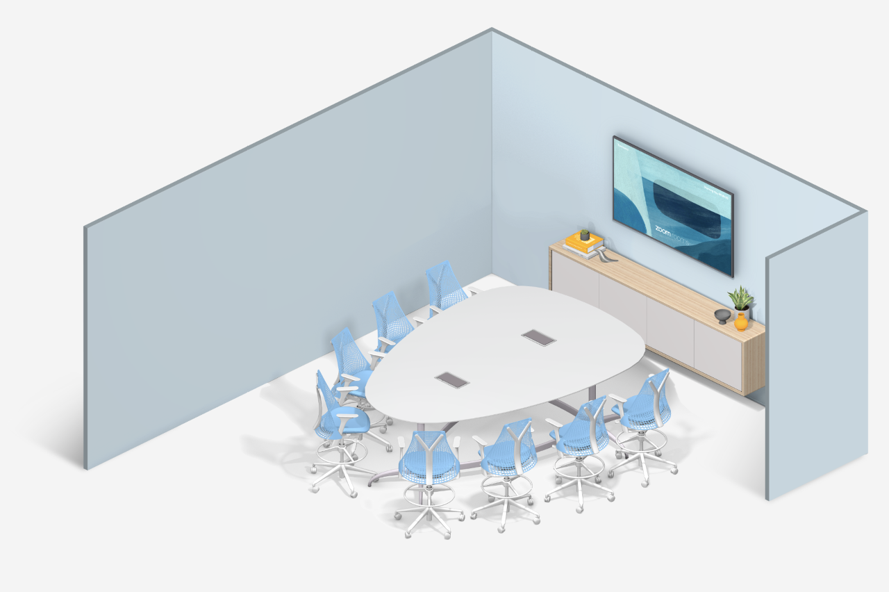 Wir konfigurieren für Ihre individuellen Bedürfnisse das passende Produktpaket. Das empfohlene Setup umfasst folgende Komponenten: Display, Video- und Audio-Lösungen, Tischanschlussfeld, Signalübertragung und Medienmöbel.