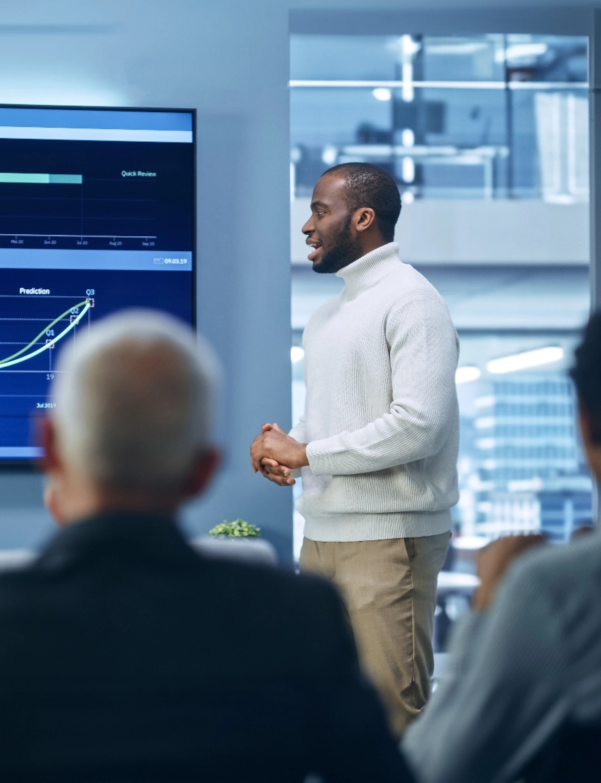 Im Fokus steht die nutzerfreundliche und gleiche Bedienung eines jeden Raumes, unabhängig von Größe und Personenzahl. Sie können unsere optimierten Setups in mehreren Konferenzräumen einrichten oder Sie greifen auf unsere mobilen Lösungen zurück. Ihre Mitarbeiter und Mitarbeiterinnen finden in jedem Ihrer Räume dasselbe Bedien-Setup vor. Dies erspart Zeit und reduziert in hohem Maße Ausfälle wegen fehlerhafter Bedienung.
